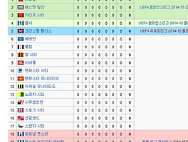 눈에 띄는건 맨유, 리버플, 첼시, 멘체스터 시티가 겨우 상위권 턱걸이에