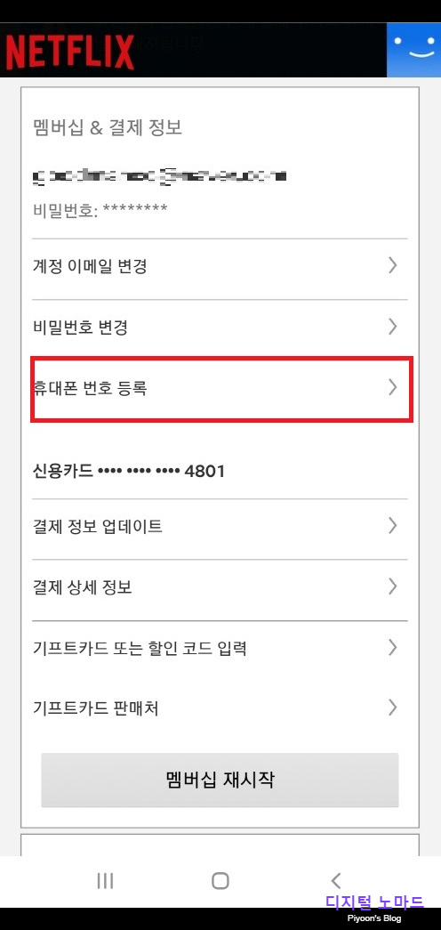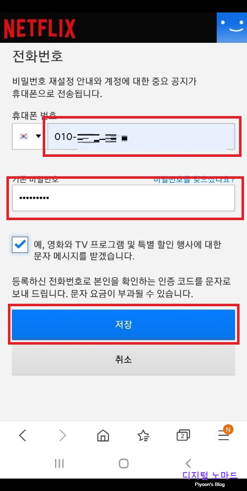 이 전화번호는 이미 넷플릭스에 등록되어 있습니다.